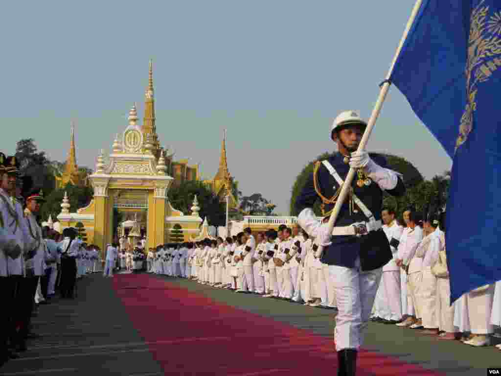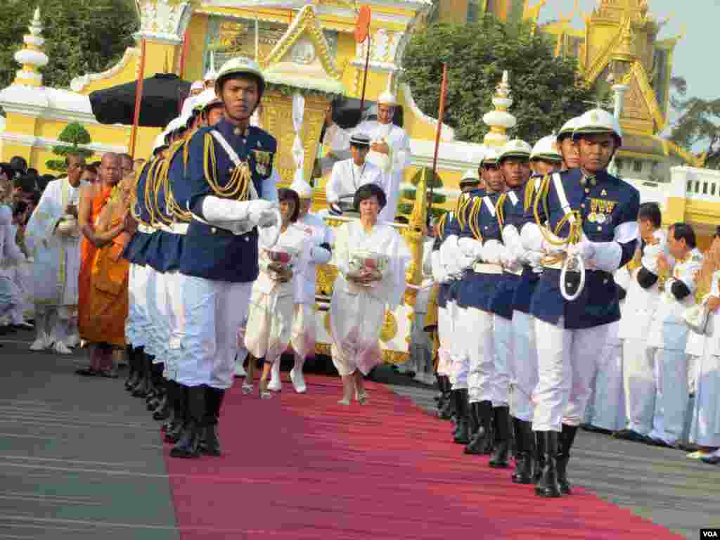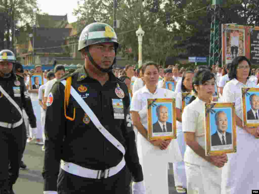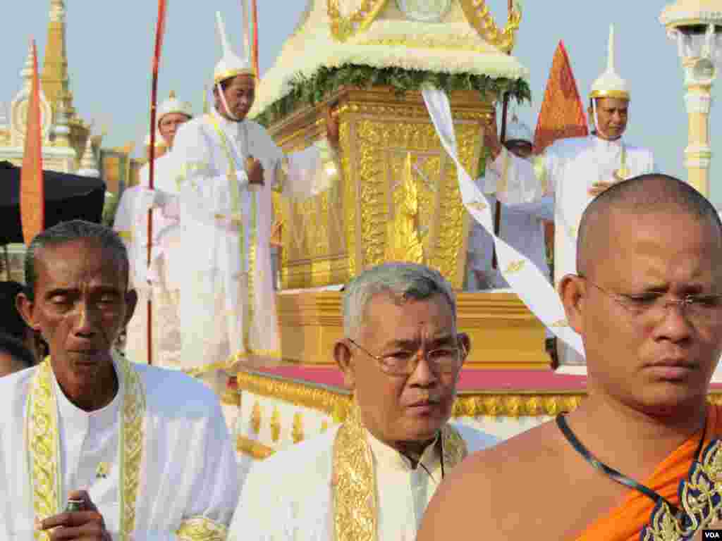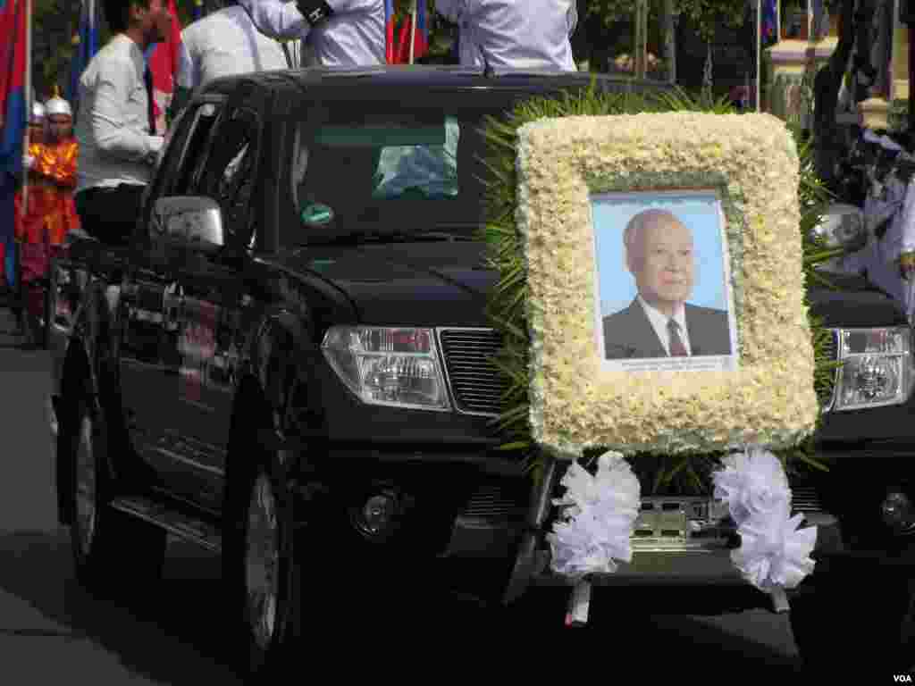 ព្រះរាជពិធីដង្ហែព្រះបរមសព ព្រះបរមតនកោដ្ឋនៃព្រះមហាវីរក្សត្រ នរោត្តម សីហនុ បានចាប់ផ្តើម កាលពីថ្ងៃសុក្រ ទី០១ ខែកុម្ភ: ឆ្នាំ២០១៣។ រូបថត ដោយ ហេង រស្មី វីអូអេ