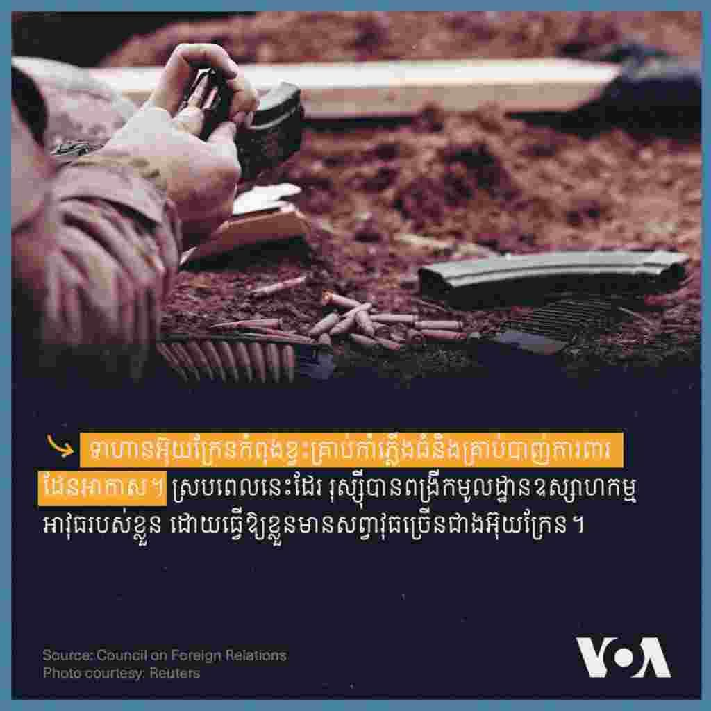 ប៉ុន្តែ ការចាប់ផ្ដើមនូវឆ្នាំទី ៣ នៃការឈ្លានពានរបស់រុស្ស៊ីនេះមានភាពស្រពិចស្រពិល បន្ទាប់ពីការវាយបកទៅវិញរបស់អ៊ុយក្រែននៅឆ្នាំ ២០២៣ មិនទទួលបានជោគជ័យ។ អ៊ុយក្រែនត្រូវការបន្ថែមទៀតនូវកងទ័ព កាំភ្លើងធំ និងគ្រាប់រំសេវ។ ការគាំទ្ររបស់សហរដ្ឋអាមេរិក ដែលនៅពេលនេះស្ថិតក្នុងភាពមិនច្បាស់ អាចកំណត់អនាគតរបស់អ៊ុយក្រែន៕
